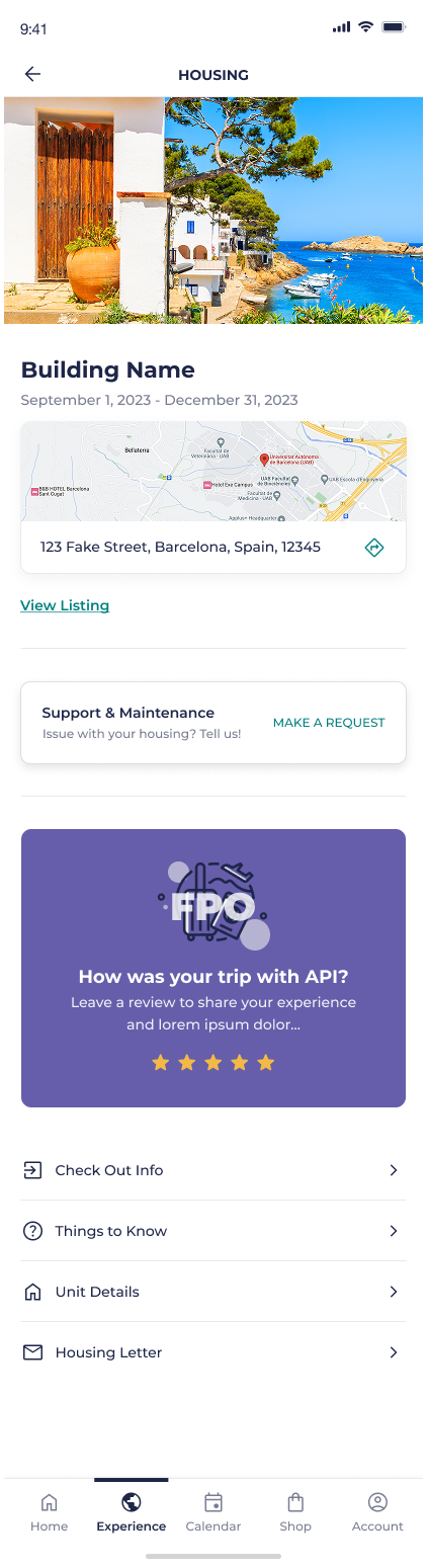 After: All Orientation content is a combination of videos and written content, fully housed in-app and easily accessible if they need to revisit any information once they’re in-country. Eager students can get a head start and review their Orientation information early, while last-minute students can tackle their content in the airport or on public transit so they can jump right into their study abroad experience when they arrive. Those who need a nudge to go through Orientation will see task reminders in “Onboarding”.