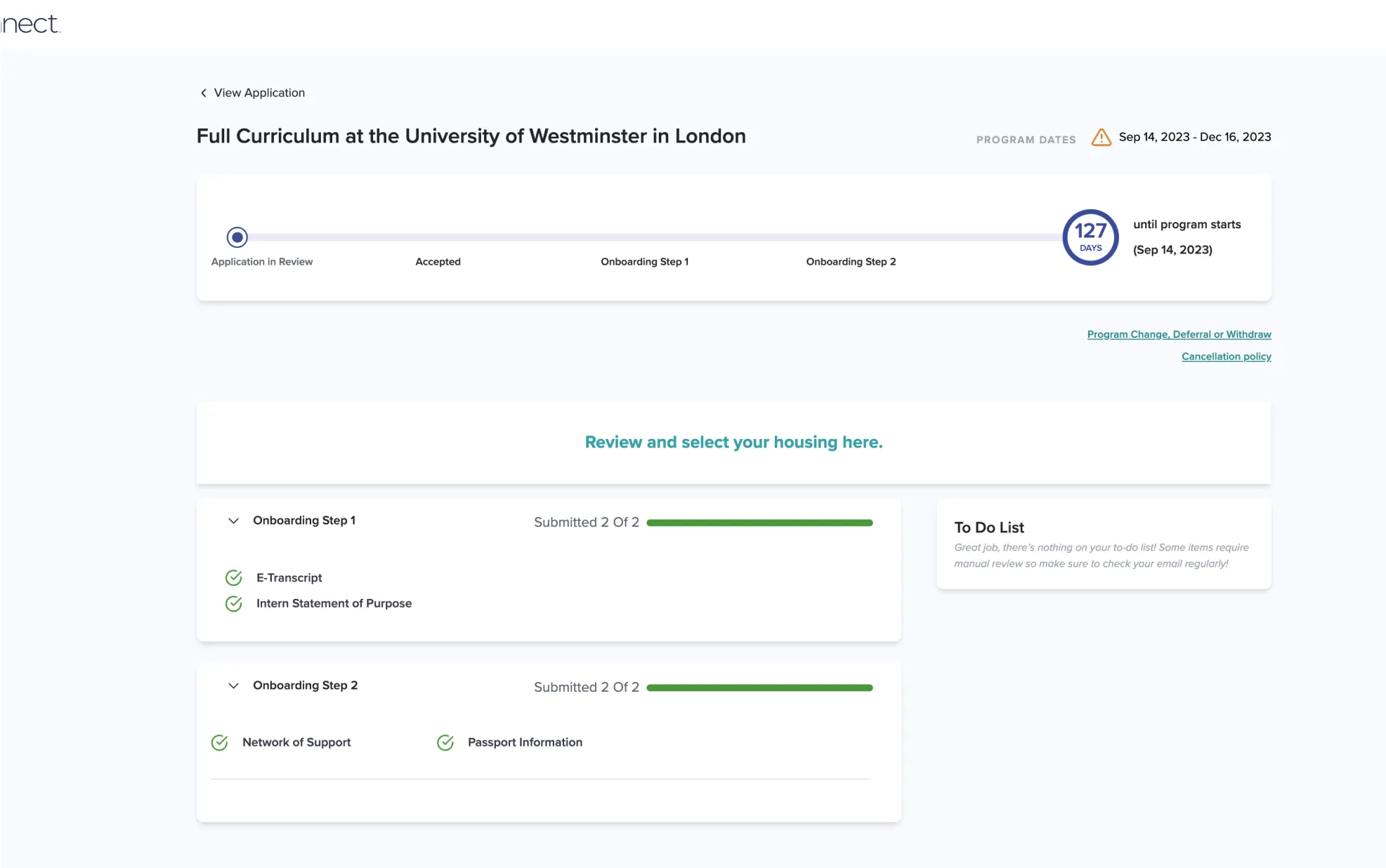 For MVP, the application and purchasing experiences were fully online and the app purpose was to be a companion for students who have applied for and have been accepted to a program.